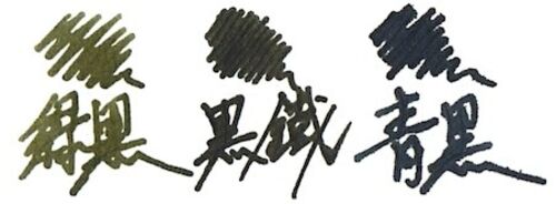 ayatsujistさんに、青黒、緑黒、黒鐵の3色をご試用いただきました。 インク3色届きました。試し書きしてみましたので感想を書かせていただきます。 青黒:セーラーのジェントルBBに近い感じがしました。市販の古典BBより緑めかな、と感じました。 緑黒:こち…