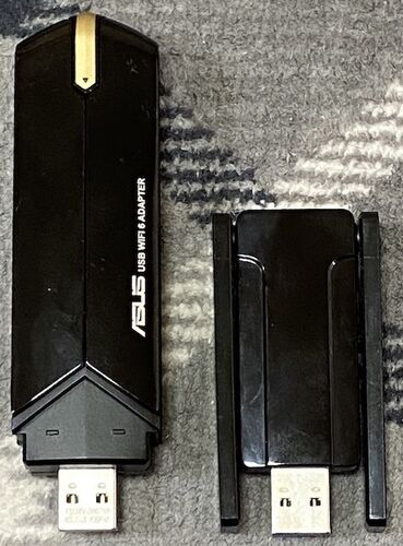 画像左がASUS USB無線LAN子機 USB-AX56で、右はCaranteeというメーカーのUSB無線LAN子機です。CaranteeのUSB無線LAN子機は、Amazonで在庫切れになっていますが、ほぼ同じものが色々なブランド名で今も売られています。Amazon上の性能表記は、それぞれ、 ASUS…