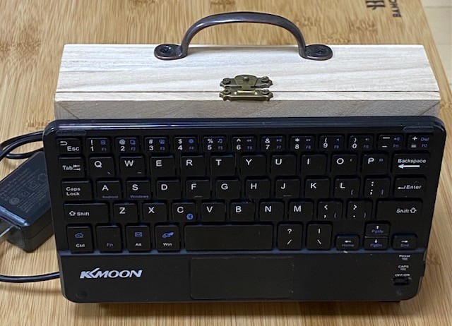 7インチの液晶と合わせて、セリアの木箱に入れたRaspberry Piです。KKmoonのbluetoothキーボードがちょうど良いサイズだったので、木箱の縁にマグネットシートを貼って固定できるようにしました。