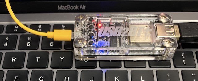 元々MD600をBT化し、iPadと接続して使おうと思い、購入していたUSB2BT+ですが、MD600を据置きで、MacBook Proでしか使わなくなったので、お蔵入りしていたのを発掘してきました。USB2BT+は、USBキーボードやマウスなどのUSB HIDデバイスを、Bluetoothに変換するアダプタです。