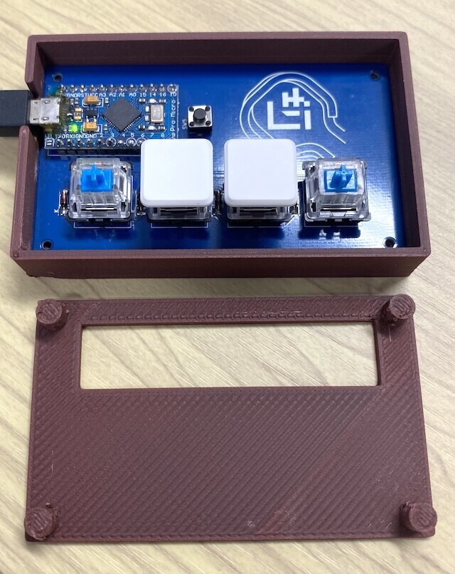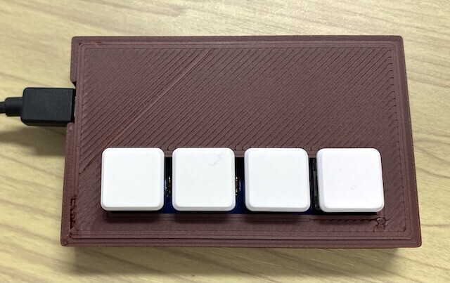 4キーの自作キーボード「meishi2キーボード」のケースをBambu Lab A1 miniで印刷しました。今回もChatGPTさんにお願いして設計して貰っています。