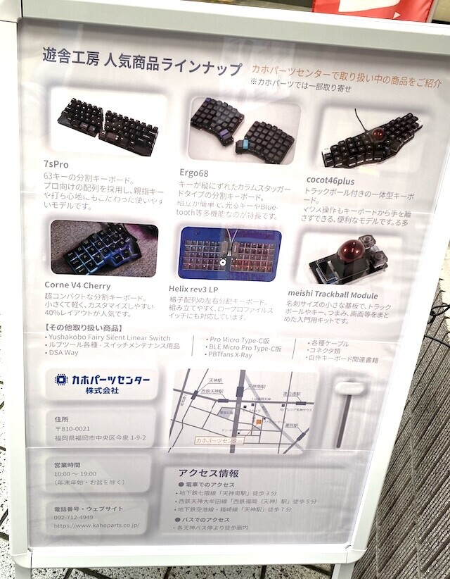 天神ビックカメラ1号館の近くにあるカホパーツセンターで遊舎工房コーナーを見てきました。